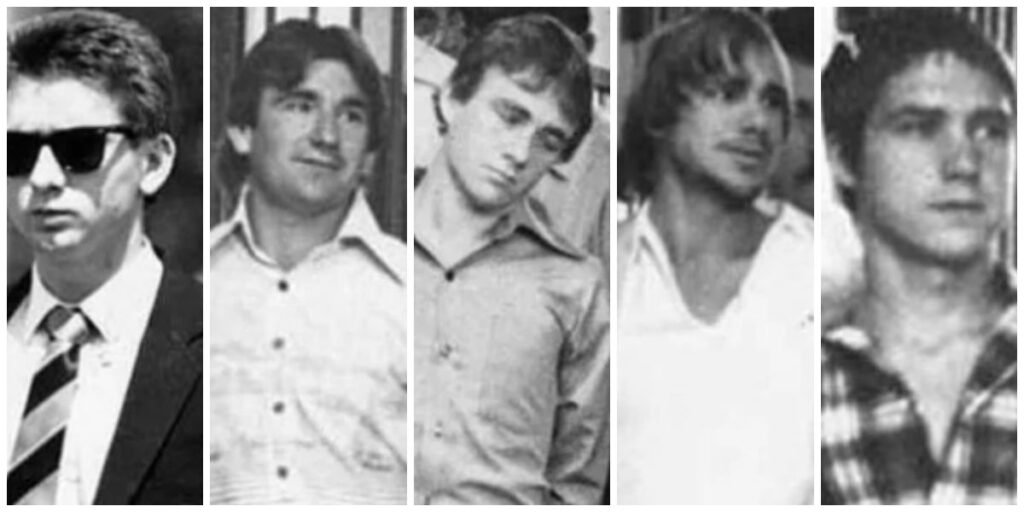 In February 1986, 26-year-old nurse Anita Cobby was walking home after a night out with friends in Sydney, Australia, when a gang of five violent criminals kidnaped her. The men savagely beat, raped, and slit Anita’s throat before callously leaving her mutilated body in a field. Shocked by the brutality, the public erupted in outrage as authorities launched a massive manhunt. A clever undercover operation secured graphic confessions, leading to the murder charges of ringleader John Travers and brothers Les, Gary, and Michael Murphy. After Travers pled guilty, the remaining four defendants were convicted in a sensational trial remarkable for the appalling indifference of the accused. The so-called “Anita Cobby case” tragically symbolizes the extreme violence against women that galvanized Australia in the 1980s.